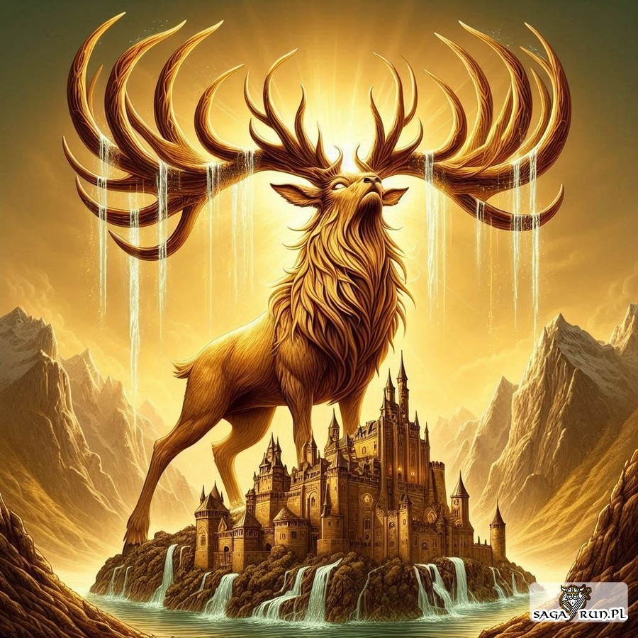 • Imponujące poroże: Poroże Eikþyrnira jest kluczowym elementem jego opisu. To z nich wypływa woda, która zasila źródło Hvergelmir, znajdujące się w Niflheimie – jednym z dziewięciu światów. Z kolei z Hvergelmir wypływa wiele rzek, takich jak Élivágar, które są źródłem życia i nieustannego przepływu energii w całym kosmosie. Jest to istotne, ponieważ Hvergelmir i jego rzeki mają fundamentalne znaczenie dla utrzymania równowagi w mitologicznym uniwersum.